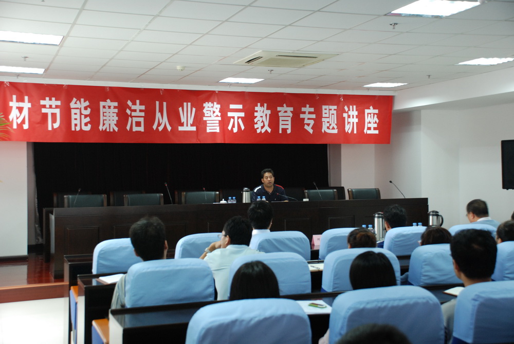 9月3日,中材節能舉辦廉潔從業警示教育專題講座,邀請全國十佳反貪局長、天津市北辰區人民檢察院偵查監督科科長謝玉忠作專題講座。講座由公司黨委書記劉習德主持。公司總經理何新平等在津經營班子成員、本部各職能部門負責人等干部職工共90余人聽取了講座。