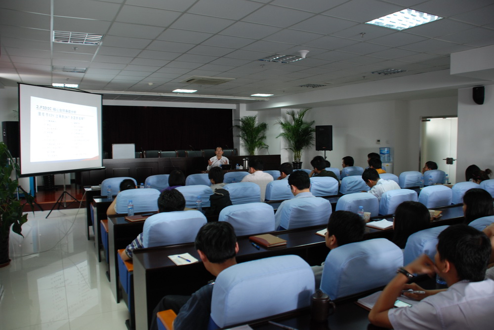 為了滿(mǎn)足公司拓展市場(chǎng)的需要,提升員工對(duì)工程合同條款的理解和運(yùn)用能力,豐富項(xiàng)目人員的專(zhuān)業(yè)知識(shí),增強(qiáng)風(fēng)險(xiǎn)防范意識(shí),中材節(jié)能股份有限公司于2011年5月25日舉辦了為期一天的FIDIC條款培訓(xùn),公司特邀天津大學(xué)管理學(xué)院張水波教授進(jìn)行講解。公司市場(chǎng)人員、設(shè)計(jì)人員、現(xiàn)場(chǎng)施工人員和管理部門(mén)相關(guān)人員近100人參加了此次培訓(xùn)。