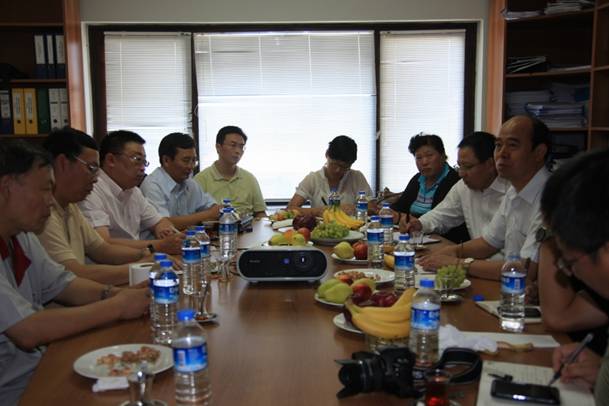 2011年8月27日上午,由工信部巡視員賈銀松、調(diào)研員高秀英女士及中辦秘書局領(lǐng)導(dǎo)共同組成的“走出去” 戰(zhàn)略實施考察團(tuán)一行在中材集團(tuán)副總于國波、中材集團(tuán)外事辦副主任袁東及中材節(jié)能股份有限公司(以下簡稱“公司”)總裁胡也明、副總裁魏文華、市場部部長王毅陪同下,視察了公司承建的土耳其AKCANSA(簡稱“CNK”)水泥公司余熱發(fā)電項目,并對現(xiàn)場人員進(jìn)行親切慰問。