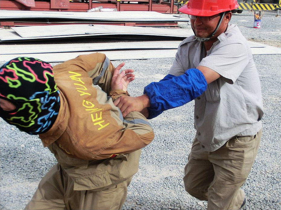 此次防恐反恐應急演習于現場辦公區域由我公司項目部、安裝分包商江蘇恒遠集團項目部、土建分包商中國港灣公司項目部聯合舉辦,并邀請業主安全管理人員現場觀摩。演練采用事前告知方式,設定模擬場景。