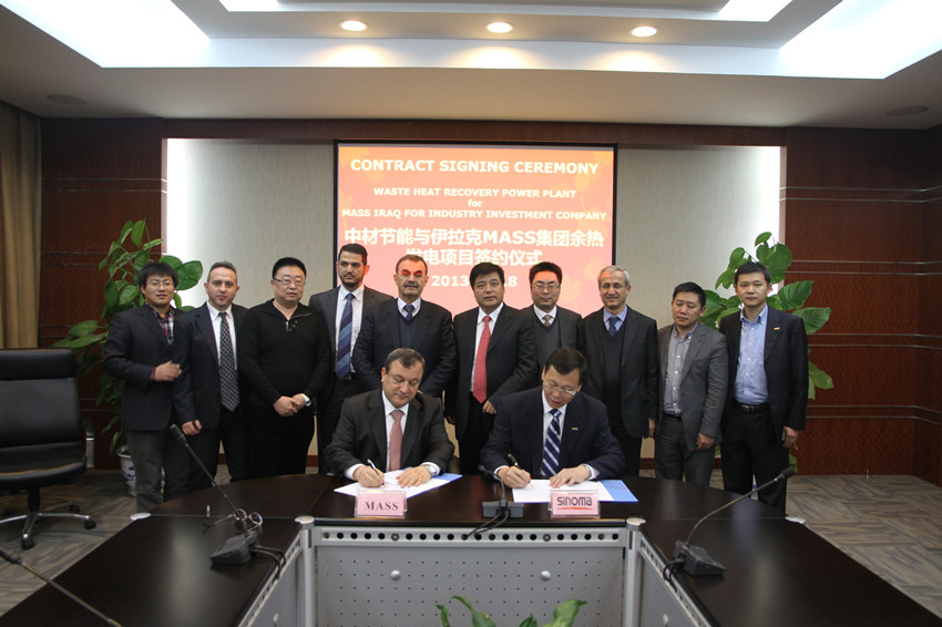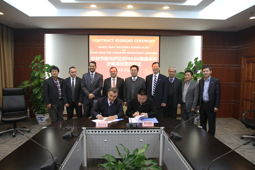 2013年12月18日,中材節(jié)能與伊拉克MASS工業(yè)投資集團(MASS Iraq for Industry Investment Company)在昆山成功簽署了伊拉克首個水泥窯余熱發(fā)電項目總承包合同。這是中材節(jié)能繼在承接沙特、阿聯(lián)酋水泥窯余熱發(fā)電總承包工程之后,在中東市場上獲得的又一重要訂單。該項目是利用伊拉克MASS集團旗下的SCP水泥廠3條日產(chǎn)5000噸水泥生產(chǎn)線建設(shè)的余熱發(fā)電項目,該項目總裝機規(guī)模為25MW。