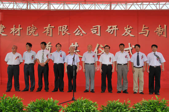 湖北省副省長田承忠,武漢市委常委、常務副市長袁善臘,湖北省政府副秘書長駱新華,東湖新技術開發區主任劉傳鐵,中國中材集團有限公司董事、總經理劉志江,中材節能董事長張奇、總經理何新平,武漢院有限公司董事長姚元君等出席儀式并為基地開工奠基。儀式由武漢院黨委書記王聰志主持。湖北省及武漢市、東湖開發區管委會有關部門負責人,客戶代表,設計勘察單位代表,武漢院員工等共計200余人參加了開工奠基儀式。
