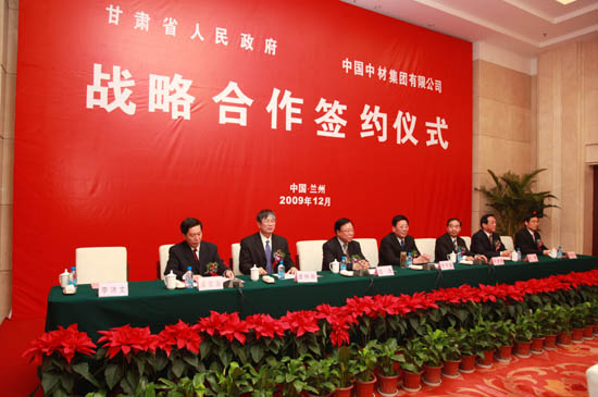 甘肅省委書記陸浩,省長徐守盛,省委常委、省委秘書長姜信治,副省長石軍,省政府秘書長李沛文、省委副秘書長、省委政研室主任賈廷權(quán),省政府副秘書長贠建民;省發(fā)改委主任趙春,省工業(yè)和信息委主任李平,省財(cái)政廳廳長周多明,省國資委主任馬艾武;中材集團(tuán)董事長、中材股份董事長譚仲明,中材集團(tuán)黨委書記于世良,中材集團(tuán)黨委常委、中材股份總裁周育先,中材股份副總裁隋玉民、王廣林;甘肅祁連山建材控股有限公司董事長楊皓,祁連山控股總經(jīng)理、祁連山水泥董事長脫利成等出席股權(quán)轉(zhuǎn)讓儀式。儀式由李沛文主持。